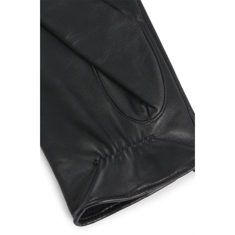 Modern gloves with touchscreen-friendly fingertips by BOSS. This pair has embossed branding and wool-blend lining. We continuously look for more responsible ways to produce and finish our products. A minimum of 60% of the leather used to make this product has been sourced from certified tanneries.
