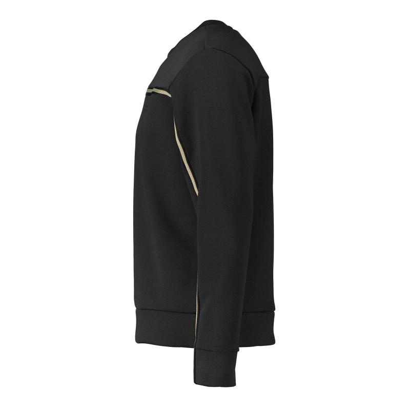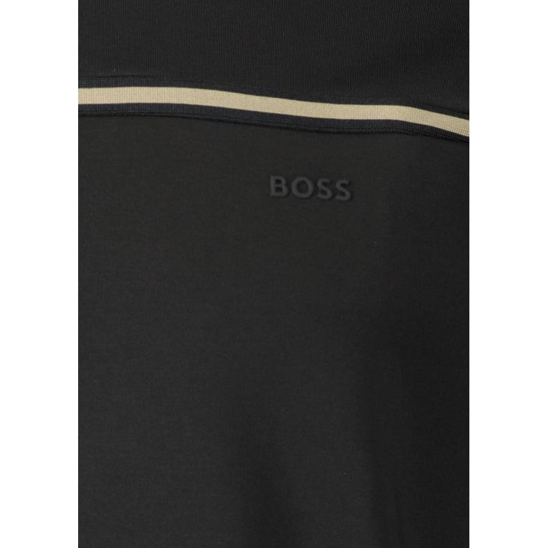 Svart sweatshirt från BOSS Green. Tröjan har rund och ribbstickad halsringning samt ribbstickade muddar vid ärm- och plaggslut och kontrastränder över bröstet och ärmarna samt logotyp. Tillverkad i en bomullsblandning.