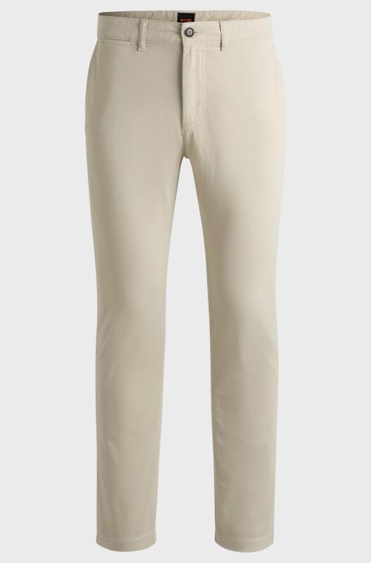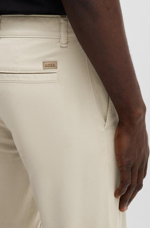 Chinos som är enkla att styla, från BOSS Herr. Tillverkade av mjuk satin med stretch för komfort. Modern straight fit.