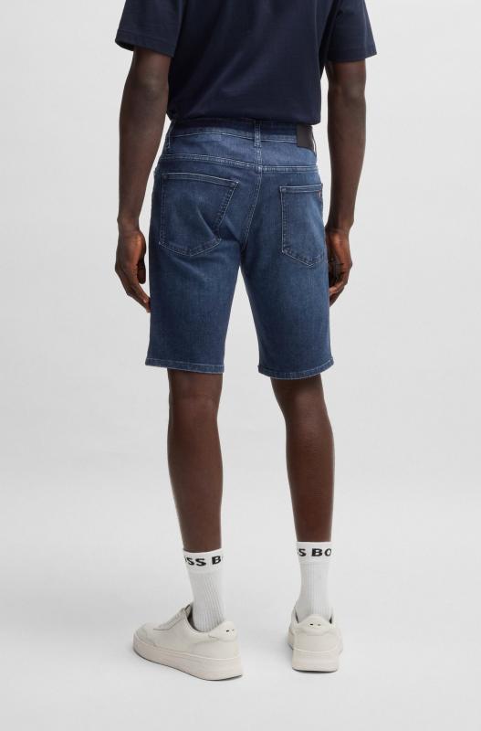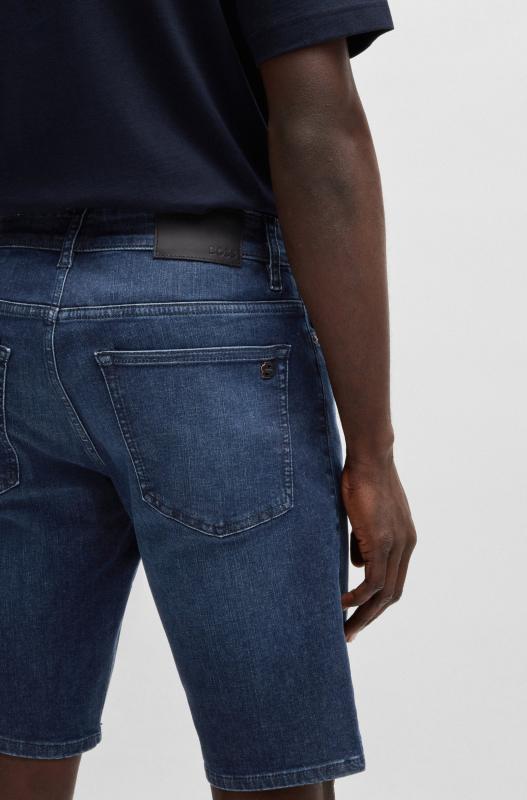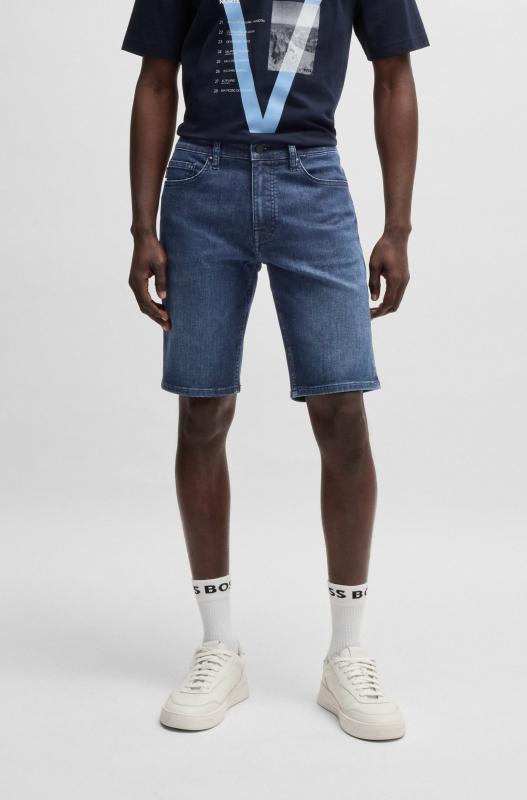 De här slim fit-shortsen från BOSS Herr har extra stretch som ger rörelsefrihet och återfår sin form. En modern och ledig look. Slubbgarn med en fräsch blå färg. Råmaterialen i den här produkten kommer från ett regenerativt jordbruk – en metod med fokus på att bevara och återställa miljön.