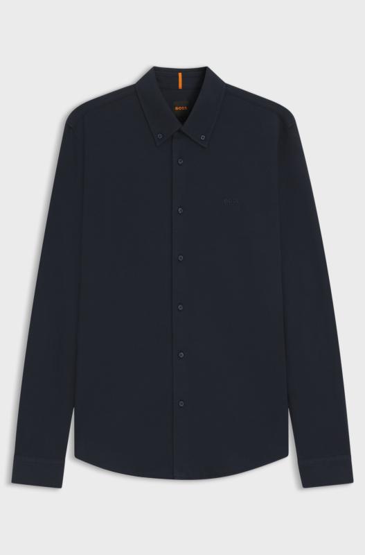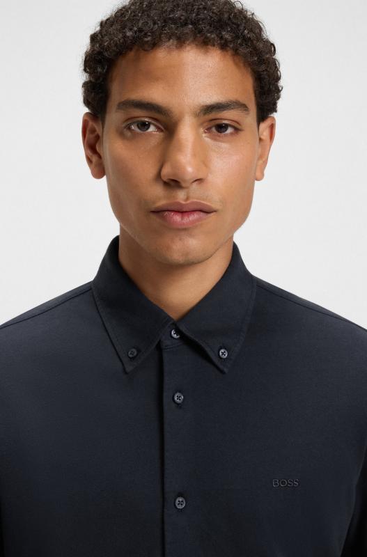 Skjorta i en stilren slim fit, från BOSS Herr. Tillverkad av extra mjuk bomullsjersey för komfort. Broderad logga. Button down-krage.