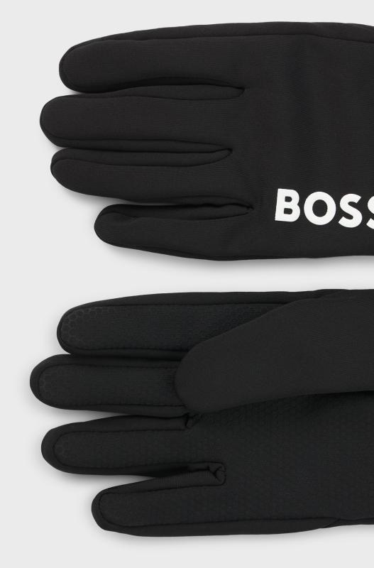 Sporty running gloves by BOSS, crafted in fully lined wind-stopping fleece with stretch. This touchscreen-friendly pair features a connecting clip and printed branding.