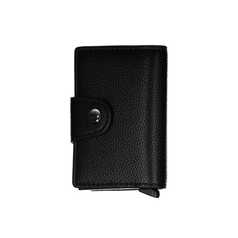Svart kortfodral från BOSS Black. Kombinerad plånbok och kortficka. Logotyp i metall på plånbokens framsida. Knäppning på plånbokens baksida. Tillverkad i läderimitation.