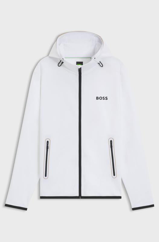 Hoodie med dragkedja från BOSS Herr. Av snabbtorkande gabardin för hållbar komfort i alla väder. Straight fit. Justerbar luva.