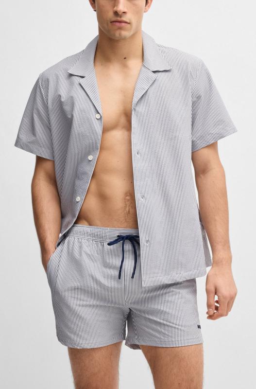 Naturligt snabbtorkande badshorts från BOSS Herr. Designade i randig seersucker som ger ett behagligt luftflöde. Bär med den matchande skjortan.