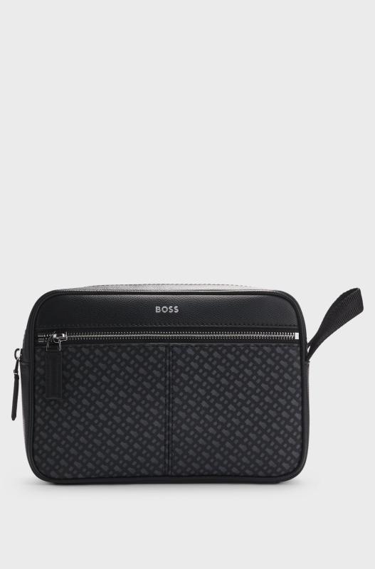 En ikonisk necessär från BOSS. Tillverkad av syntetmaterial. Med monogramtryck på framfacket och en logga. Syntetmaterial kallas ibland för läderimitation och är designat för att likna äkta läder. Det kan ha en matt, blank, slät eller strukturerad yta. Mått: 17,5 x 24,5 x 7,5 cm.