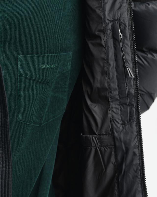 En perfekt jacka som slutar vid höften, framtagen med normal passform och en vattenavvisande yta. Den är konstruerad i puffmodell och har en helfodrad, vadderad insida, avtagbar kapuschong och snedställda sidfickor med dragkedja. Den har även en elegant dragkedja fram, stormmuddar och ett GANT-märke i silikon på bröstet. Jackan har en vattenavvisande DWR-beläggning (Durable Water Repellent) som hjälper till att leda bort vatten i lätt regn. Om du skulle drabbas av en oväntad regnskur ska du följa skötselanvisningarna noga för att återställa plagget och förlänga livslängden.