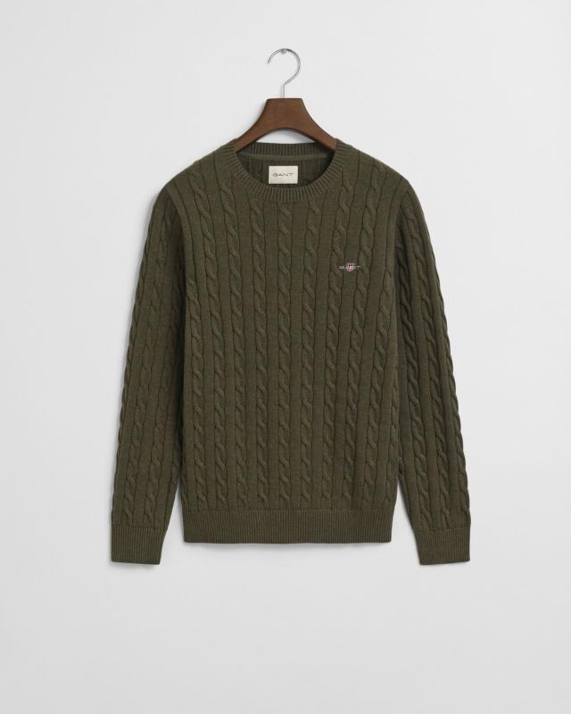 Tröja med en heltäckande kabelstickad struktur, normal passform och klassisk polokrage. Den är en preppy klassiker med vår ikoniska GANT-sköld broderad på bröstet och ribbstickade muddar och halsringning.