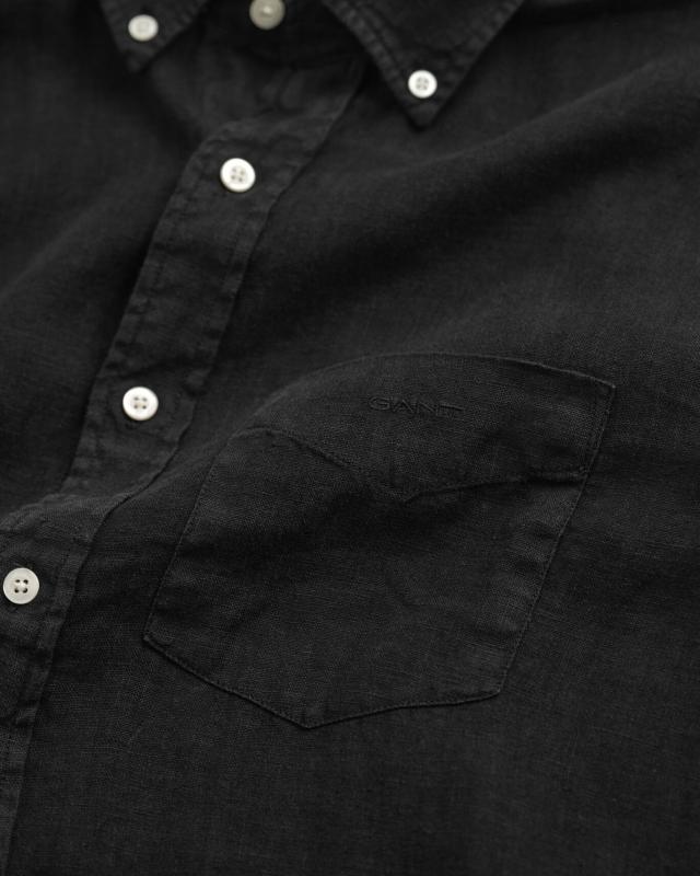 Skjorta i 100% linne, en naturligt andningsbar och lätt fiber, med regular fit. Den har en fräsch look som lämpar sig väl för eleganta och enkla sommarevent. Den här skjortan är designad för att bäras helt lös för en lite ledigare stil, och har plaggfärgats för en djup nyans och en autentisk använd look. Den har en button down-krage, rundad fåll, bröstficka med broderad logotyp samt boxpleat med locker loop på ryggen. Skjortan passar lika bra ihop med shorts, jeans och chinos, och kommer att bli en sommarfavorit många år framöver.