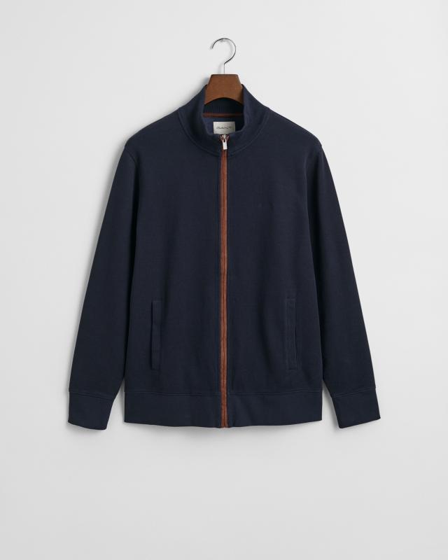 Kofta tillverkad i 100% bomull med mjuk känsla, regular fit, silverfärgad metalldragkedja och detaljer i mockaimitation på knappslån och på insidan i nacken. Designen fulländas av en broderad GANT-logo ton i ton på bröstet.