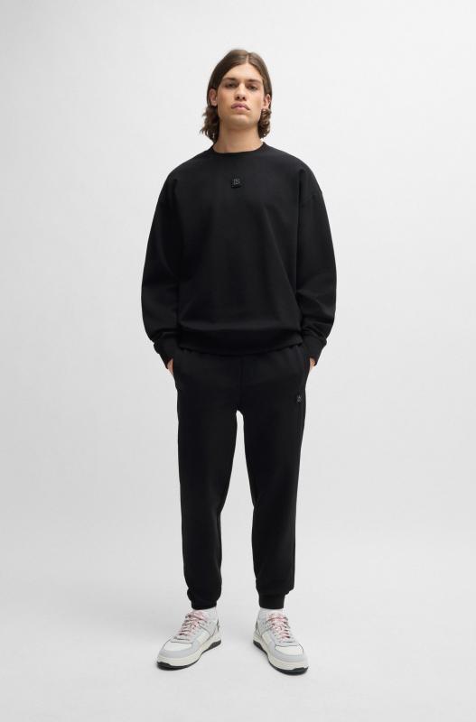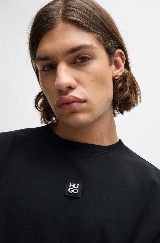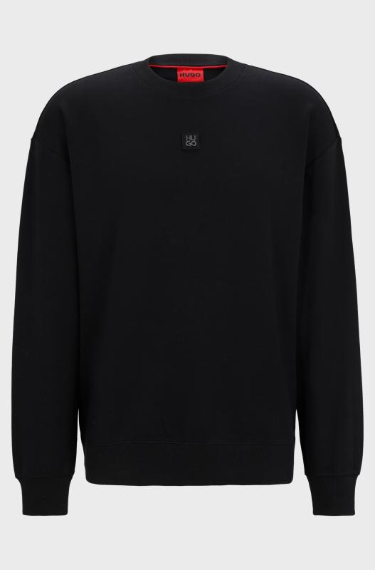 A regular-fit sweatshirt by HUGO Menswear, crafted in cotton blended with stretch and trimmed with a gunmetal stacked logo.