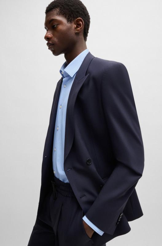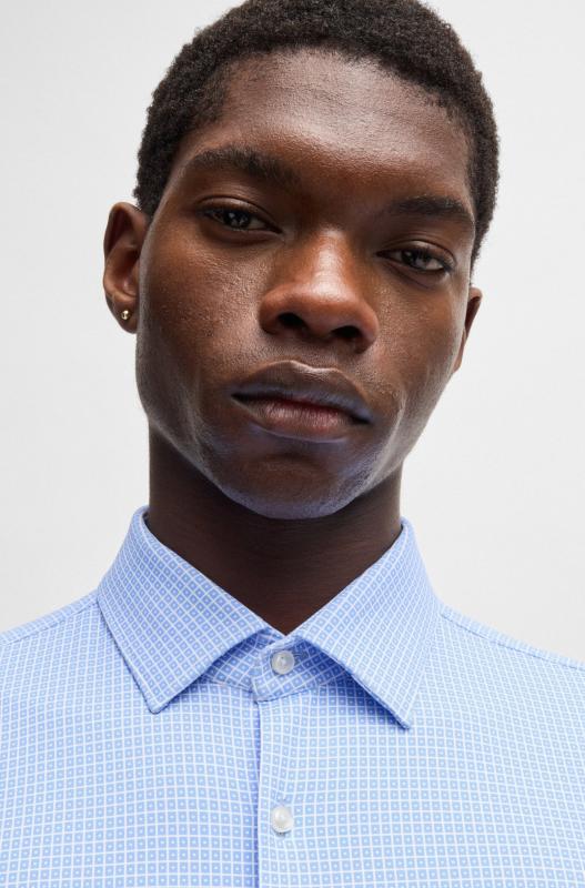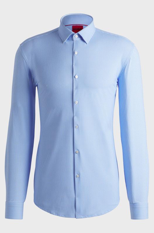 En streamlined fit-skjorta från HUGO Herr. Ett starkt tillskott i den moderna garderoben. Tillverkad av performance stretch-jersey för flexibilitet och komfort.