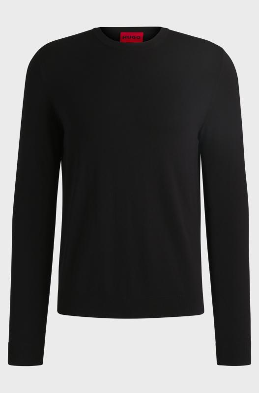 En tröja med rund hals från HUGO Herr. Stickad med mjukt garn i slim fit. Perfekt att bära i lager. Produkten är tillverkad av cellulosafibrer från naturligt råträmaterial som kommer från ansvarsfullt skötta skogar. Vi samarbetar med externa organisationer för att säkerställa en respektfull hantering av urskogar och hotade skogar.