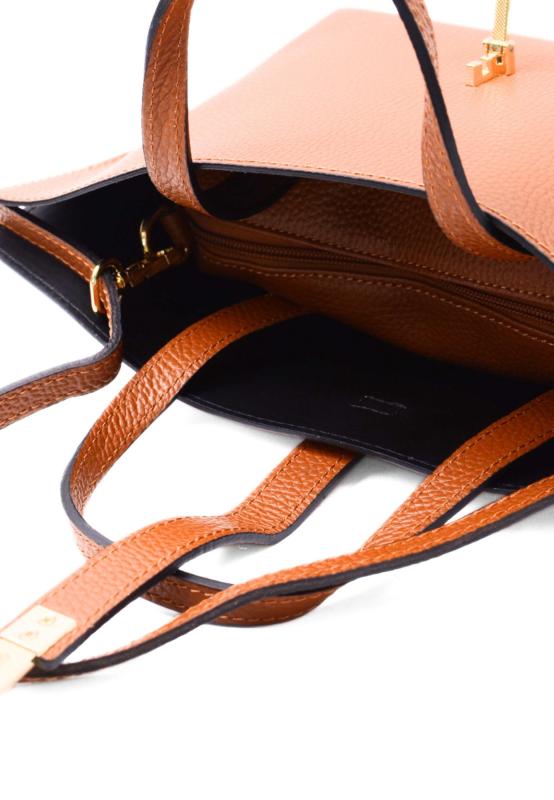 Elegant väska med stilrent lås och praktisk design. Inuti finns ett fastsytt fack som påminner om en liten påse, vilket ger totalt tre separata fack för perfekt ordning på dina saker. Den långa axelremmen gör väskan bekväm att bära över axeln.