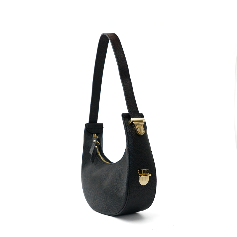Luna Mini är en stilren och kompakt väska i halvmåneform. Den korta remmen kan justeras för att bäras i handen eller över axeln. Väskan stängs med dragkedja och har en rymlig insida med ett stort fack samt en liten ficka med dragkedja för värdesaker. En chic och tidlös väska perfekt för både vardag och fest.