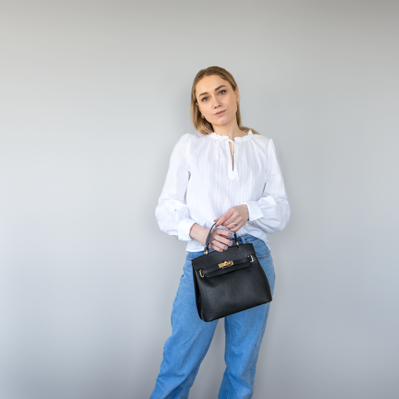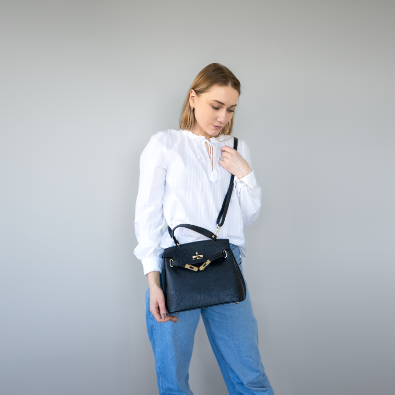 Rivoli i läder är en stilren och tidlös väska i äkta läder som ger en fin struktur och ett exklusivt uttryck. Insidan är klädd i saffianoläder och har en liten ficka med dragkedja för extra funktionalitet. Den kompakta storleken och locköppningen gör den både smidig och elegant. Kan bäras i handen eller med den medföljande axelremmen. En chic väska som passar både till vardag och fest.