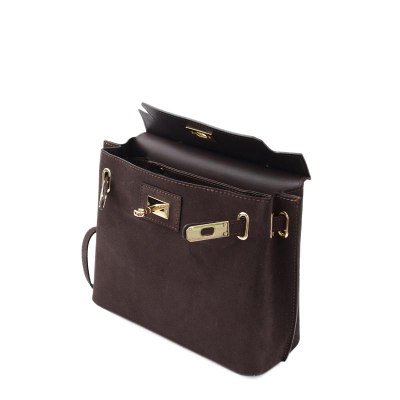 Elegant väska i mjuk mocka med sammetslen känsla. Har en innerficka med dragkedja och stängs med lock. Axelrem ingår.х11x22cm
