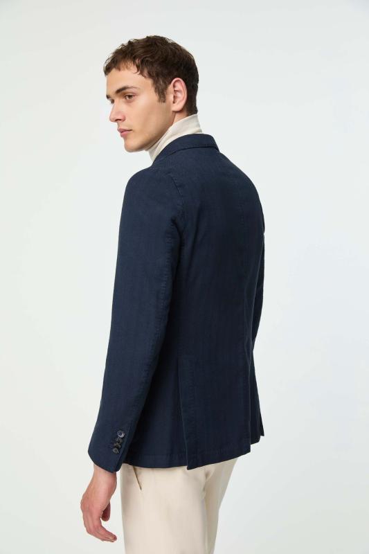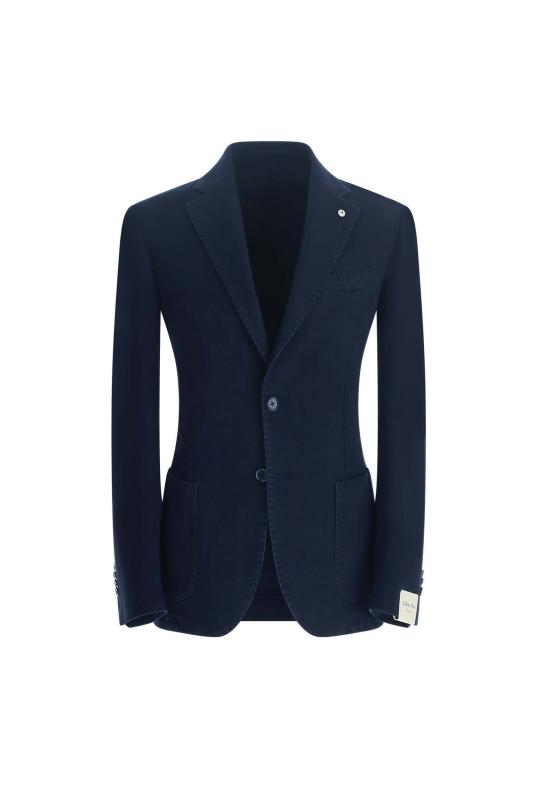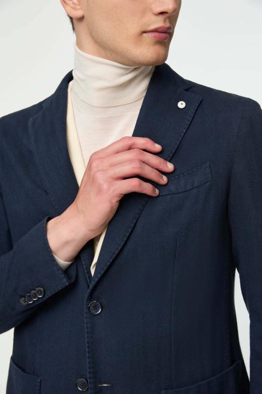 Men's single-breasted tailored jacket in ocean blue. Unlined, in 100% cotton, this blazer boasts AMF stitching further enhanced by garment-dyeing. Never ordinary, it is a true wardrobe essential.