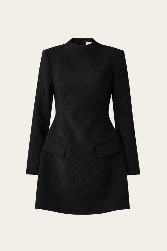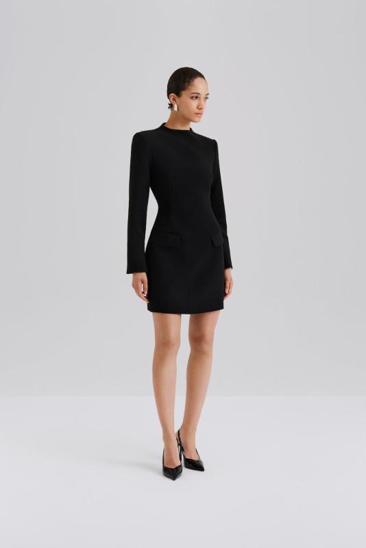 Miniklänning med hög krage och figursydd midja