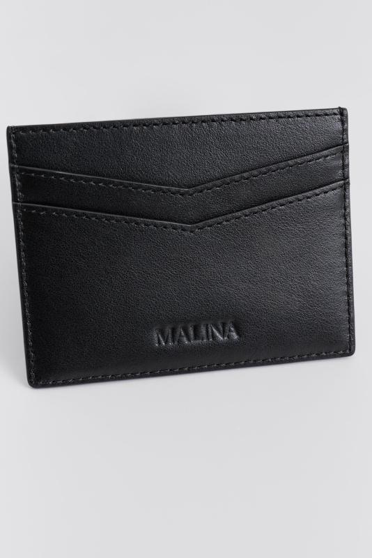 Korthållare i mjukt italienskt läder med fyra kortfack, ett mittfack och Malina monogram.