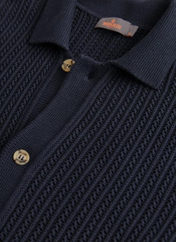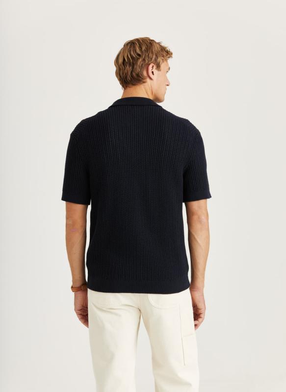 The Connors Sport Polo is an elegant alternative to the classic polo shirt, pairing well with jeans, chinos, or shorts. It features a traditional shirt collar with soft lines, offering a relaxed yet sophisticated look. Knitted in a perforated pattern that provides both texture and breathability, it is ideal for warmer occasions.