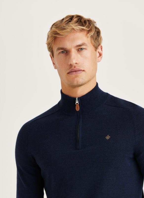 Light and luxurious merino wool in a half-zip. The Merino John Zip is a favourite and part of our highly appreciated merino wool collection. Merino wool is a natural material with several notable qualities. One of the most prominent is its temperature-regulating ability, which makes it a great investment that can be worn year-round. This knitted jumper has a slim silhouette and can be worn on its own, under a blazer, or paired with a shirt.
