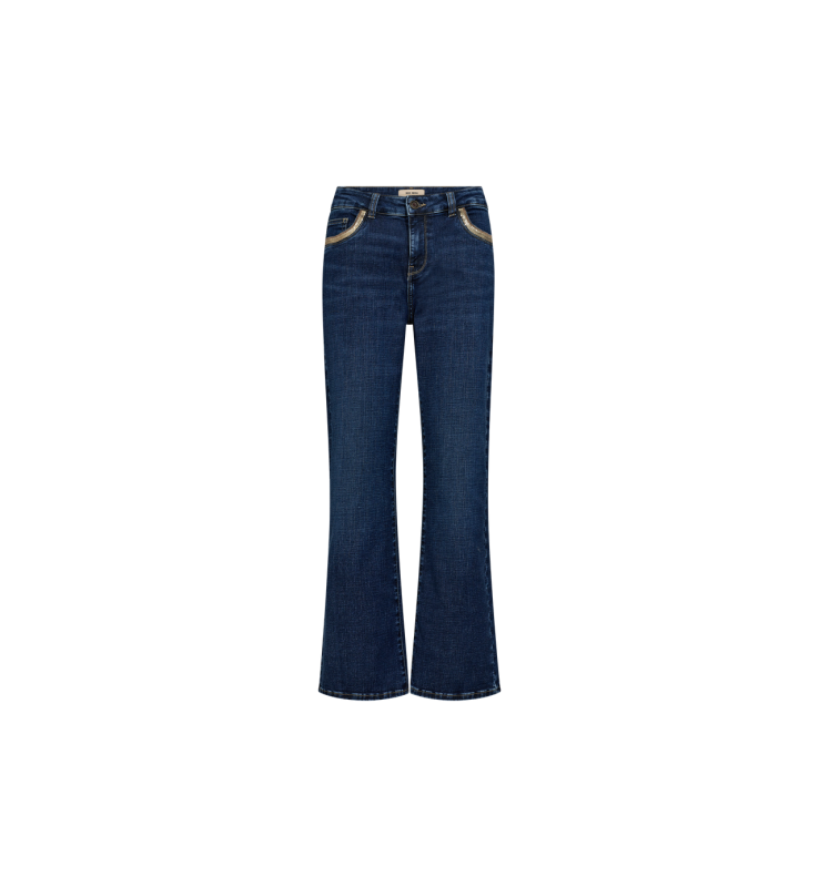 Dessa stiliga högmidjade jeans är designade i en smickrande flare-passform som erbjuder både elegans och komfort. Tillverkade av en mjuk bomullsblandning med en aning stretch, ger de en bekväm passform hela dagen. De trendiga fickdekorationerna och den mörka tvätten gör dem till ett mångsidigt val, som enkelt kan kombineras med allt från mysiga stickade plagg till eleganta silktoppar och välsittande blazers.