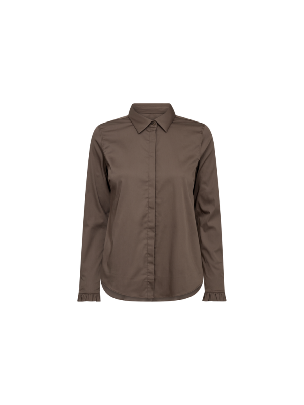 Vill du ge din outfit en touch av femininitet? Detta plagg är designat med en smickrande, kroppsnära silhuett och tillverkat i ultramjukt stretchmaterial. Den har en klassisk krage, eleganta volangärmar och en tidlös knäppning framtill. Kombinera den med strukturerade plagg så att de charmiga volangärmarna subtilt syns under ärmarna.