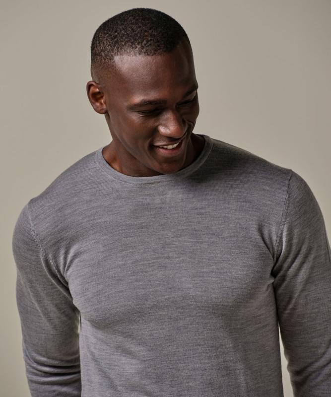 Slim fit, lightweight and made from a warm and comfortable merino wool. This fine-knit round-neck pullover in grey easily fits under or over a shirt. The pullover is made from RWS-certified mulesing-free fine wool and can be machine-washed on a wool wash cycle.