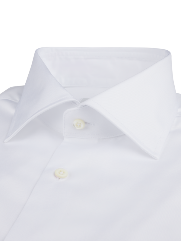Denna twillskjorta är tillverkad av twofold bomull och har pärlemorknappar, enkla manschetter och en cut away krage.