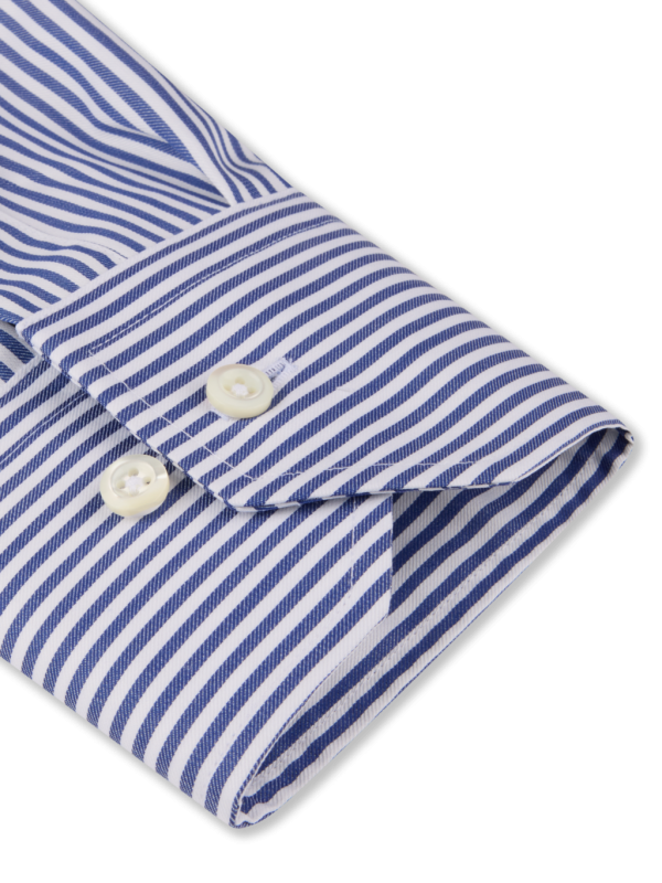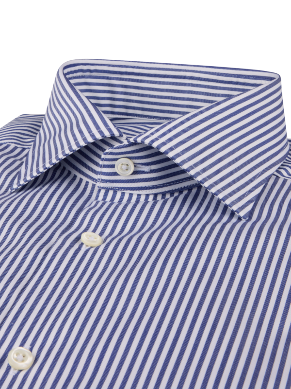 Denna randiga twillskjorta är tillverkad av twofold bomull. Skjortan har pärlemorknappar, enkla manschetter och en cut away krage.