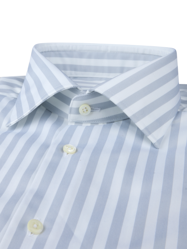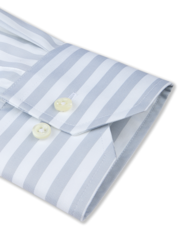 Denna randiga twillskjorta är tillverkad av twofold bomull. Skjortan har pärlemorknappar, enkla manschetter och en cut away krage.